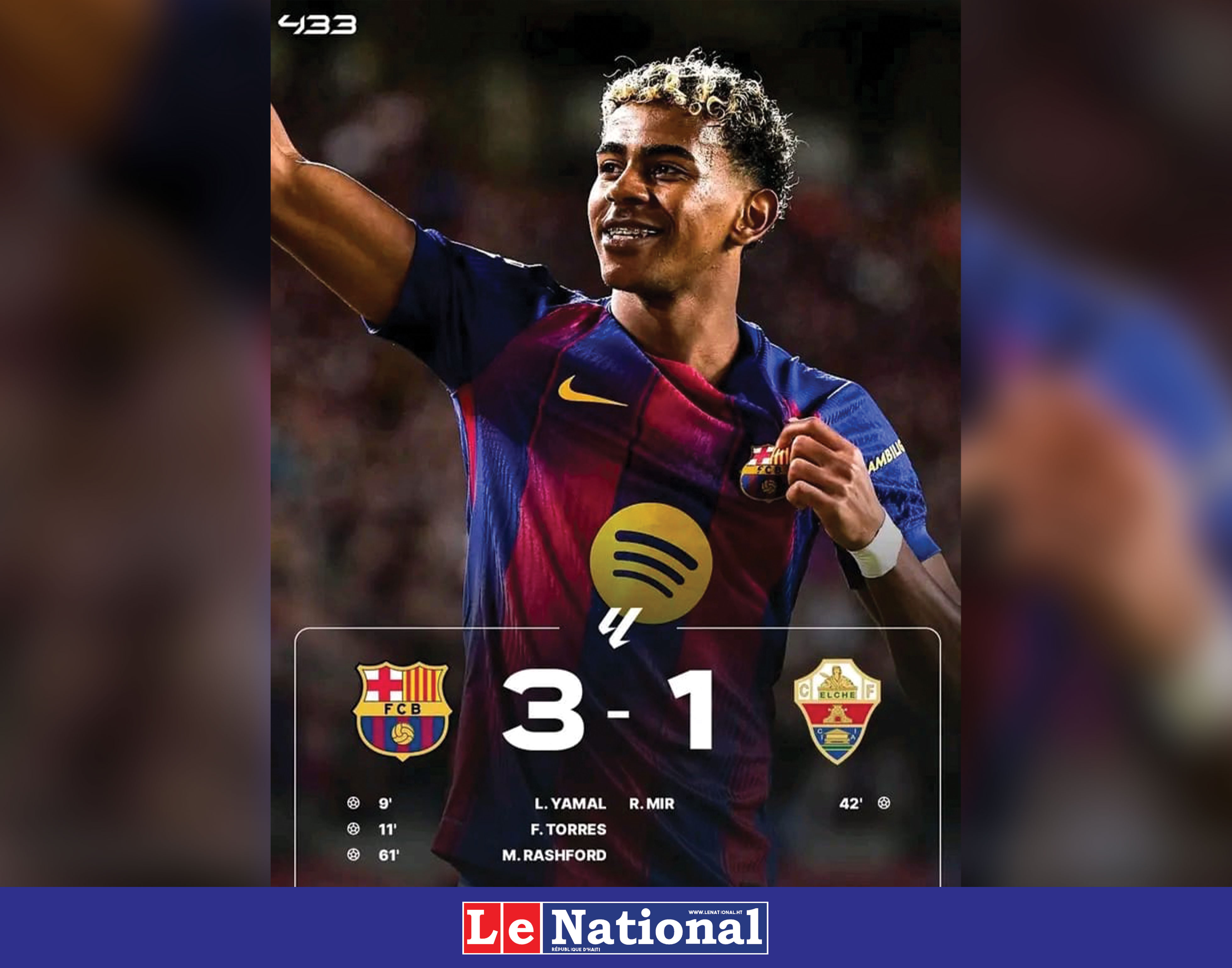 Malgré la réduction du score de Rafa Mir (41ᵉ), Marcus Rashford a tué tout suspense à l’heure de jeu (3-1, 60ᵉ). Dominateurs sans posséder la balle (49 % de possession seulement), les Blaugrana reprennent la 2ᵉ place du classement à cinq points du Real, avant un déplacement européen à Bruges.