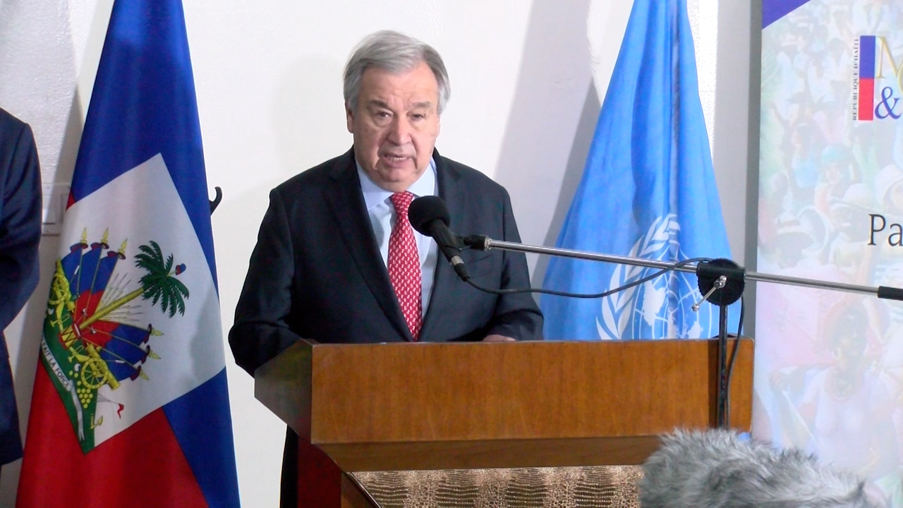 Lors d'une conférence de presse tenue à au salon diplomatique de l'aéroport Toussaint Louverture, Antonio Guterres a exprimé les préoccupations de l'ONU face à l'aggravation de la crise en Haïti. «La gravité de la situation exige une attention urgente et soutenue qui place les victimes au centre de nos préoccupations et de nos priorités. Il ne peut y avoir de sécurité durable sans un rétablissement des institutions démocratiques », soutient M. Guterres.