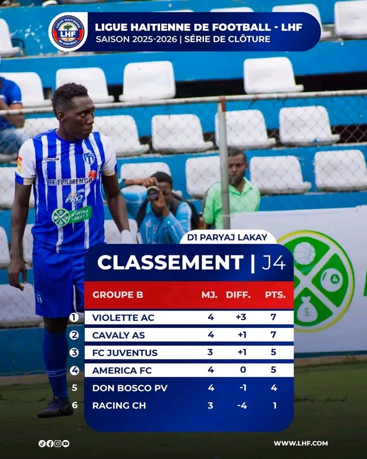 Au Parc Gérard Christophe, le Violette AC, champion en titre, a signé la performance du week-end en battant le Cavaly AS 3-0. Fabrice Védrine, Pierre Duckens et Michenaider Chéry ont permis au Vieux Tigre de s’installer en tête grâce à une meilleure différence de buts (+3).